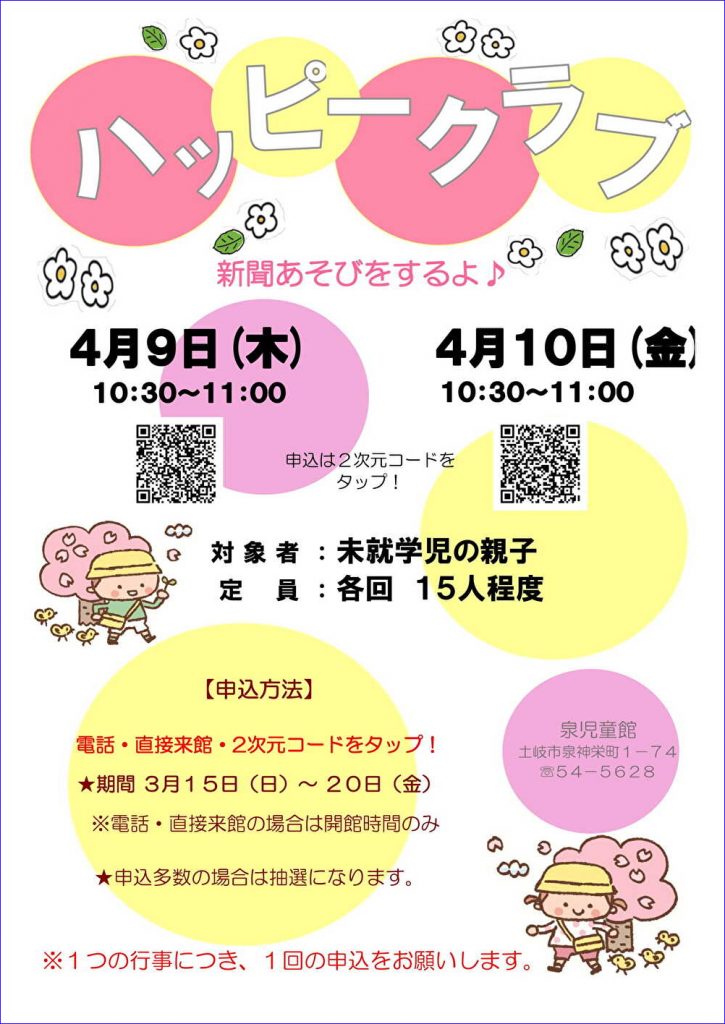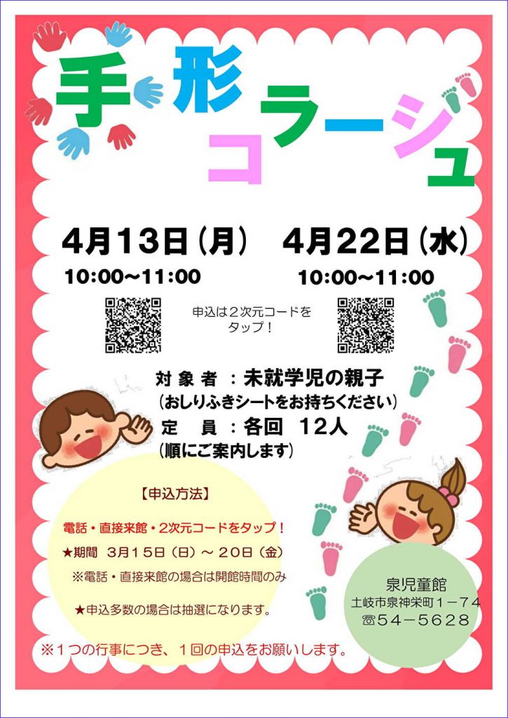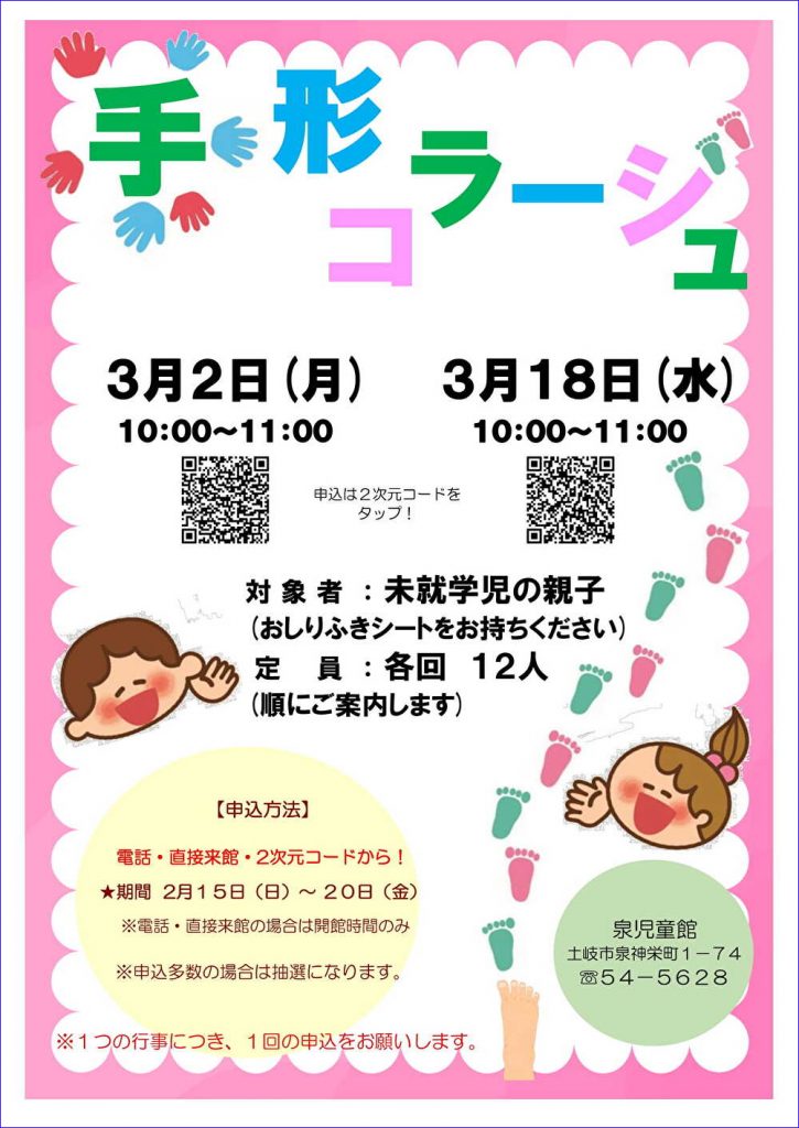ウェブの場合は、行事ポスター(PDF)の二次元コードをクリックしてお申し込みください。